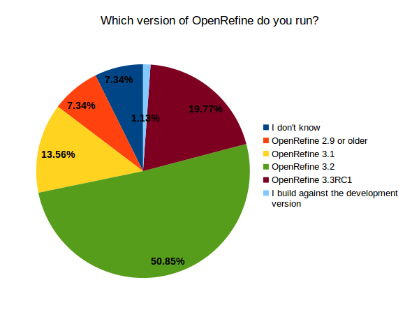 While the majority are using the latest stable version at the time of the survey (OpenRefine 3.2)