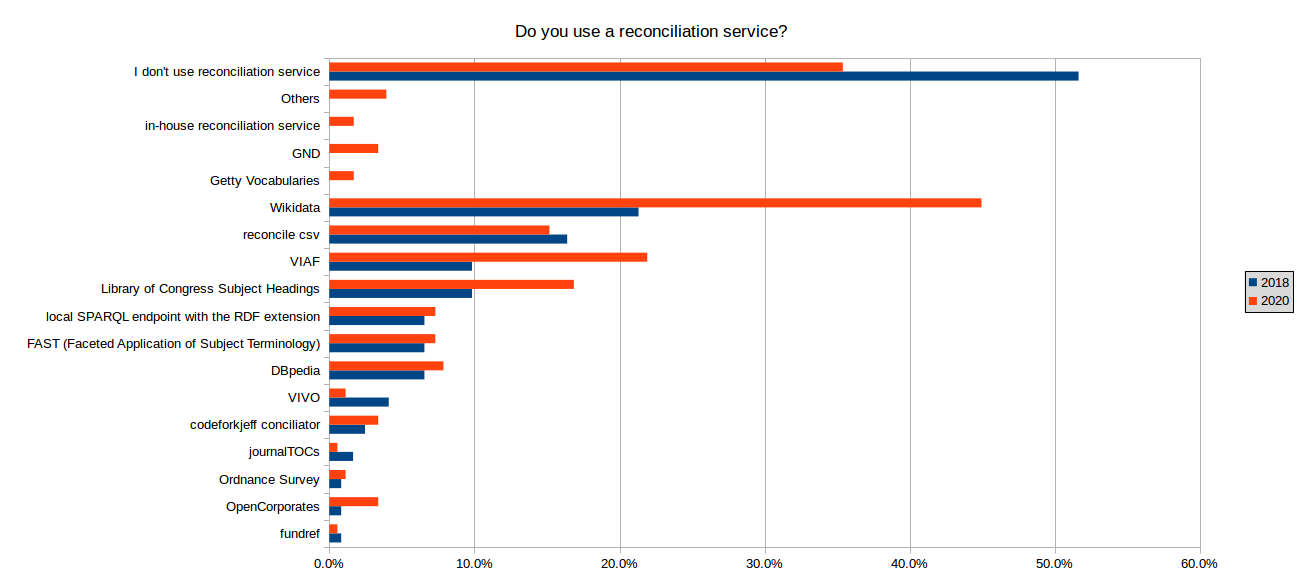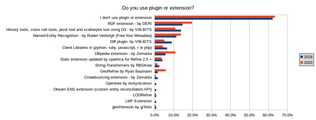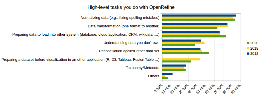 • Now more than half of the OpenRefine users use the reconciliation feature (44% in 2018 to 54% in 2020).
